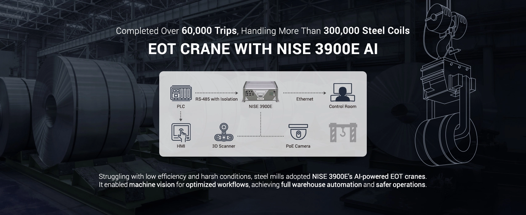 Built for high-performance industrial computing, the NISE 3900E is engineered to handle demanding workloads with ease. Powered by 8th/9th Gen Intel® Core™ processors, this fanless, rugged system delivers seamless multi-display support, ultra-fast connectivity, and flexible expansion options. With triple independent display outputs, three Intel® GbE LAN ports, and versatile I/O, it ensures unmatched efficiency for automation, AI, and edge computing. Designed to thrive in harsh environments, the wide voltage input (9V–30V DC), fanless architecture, and industrial-grade durability make it the ultimate choice for mission-critical applications. Power up your operations with the NISE 3900E!04