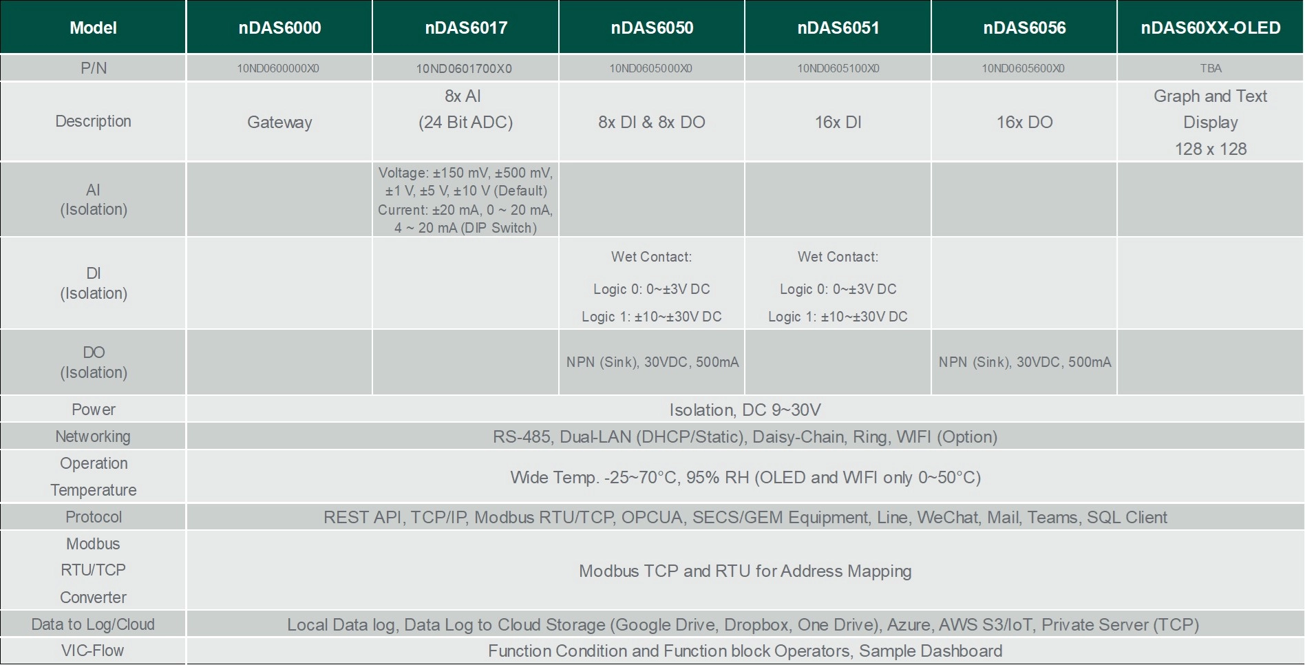 The nDAS 6000 Series from NEXCOM is a high-performance remote data acquisition module designed to streamline industrial automation and IIoT applications. Featuring 16-channel digital input with isolation protection and wide voltage support, it ensures reliable data collection even in harsh factory environments. Supporting Modbus RTU/TCP, REST API, OPCUA, and other major industrial protocols, it seamlessly integrates with SCADA systems and cloud platforms like AWS, Azure, and Google Drive. Built for edge intelligence, the nDAS 6000 Series offers local data logging, cloud sync, and programmable logic via VIC-Flow. With DIN-rail mounting, rugged -25°C to 70°C operating range, and support for dual-LAN, RS-485, and optional Wi-Fi, it’s the ideal compact gateway for scalable, future-proof Industrial PC, smart factory, and energy management deployments. A dependable alternative to legacy remote I/O and data acquisition systems, the nDAS 6000 Series helps industrial users boost efficiency and visibility across distributed assets.