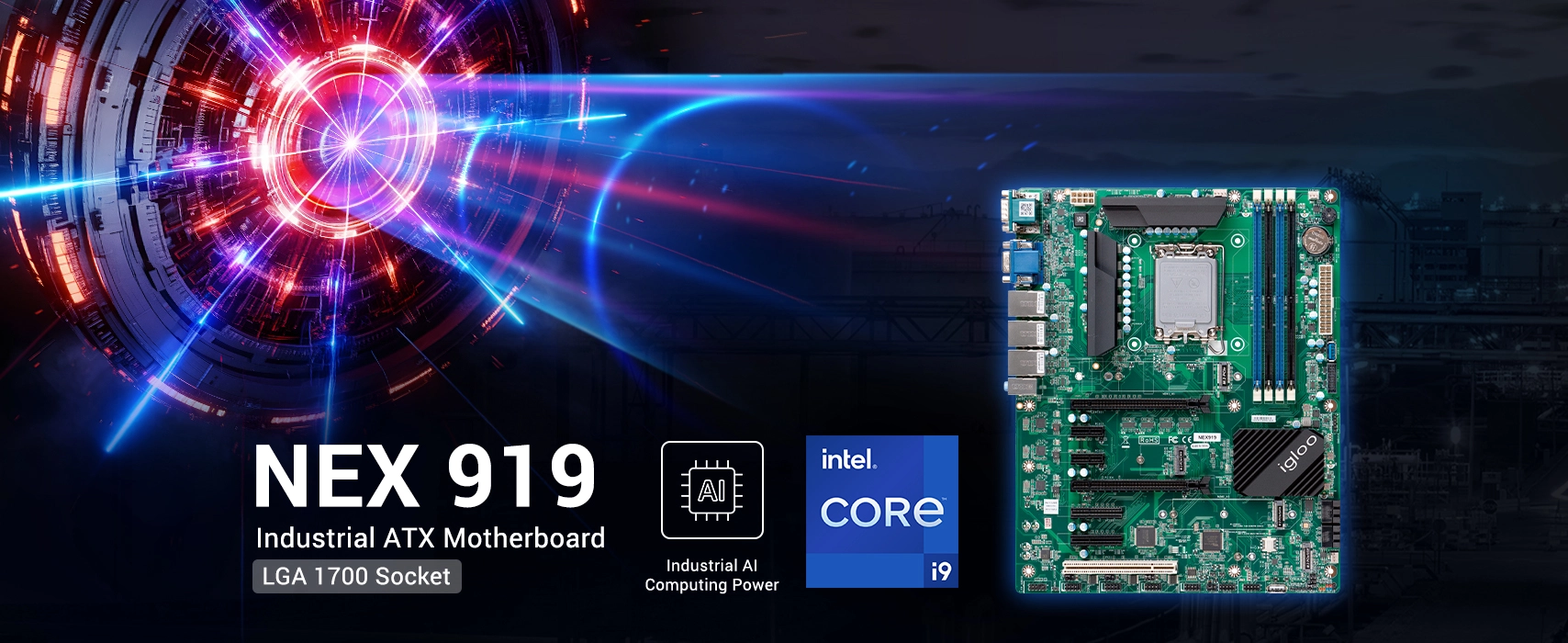 The NEX 919 ATX motherboard supports Intel® 12th to 14th Gen Core™ processors with up to 128GB DDR5 memory and triple 4K display outputs (VGA, HDMI 2.0, DP 1.4). Equipped with multiple PCIe Gen4 slots, dual 2.5GbE LAN, and RAID-capable storage, it offers flexible expansion and reliable connectivity. Built for industrial environments with wide operating temperatures and TPM 2.0 security, the NEX 919 is the ideal platform for automation, embedded control, and multimedia applications.03
