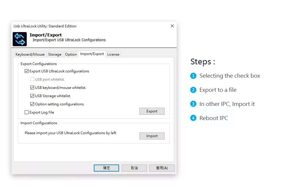 Allows easy import and export of configuration settings for quick deployment and backup. - USB Port Management: